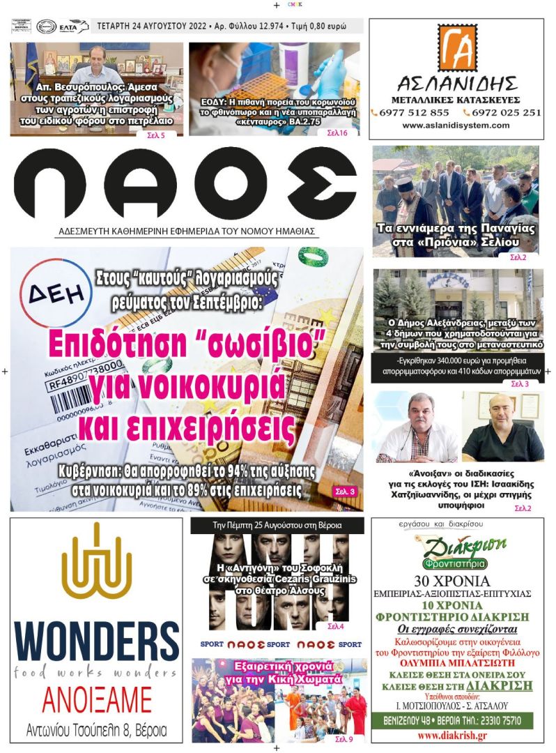 Πρωτοσέλιδο 24/8/2022