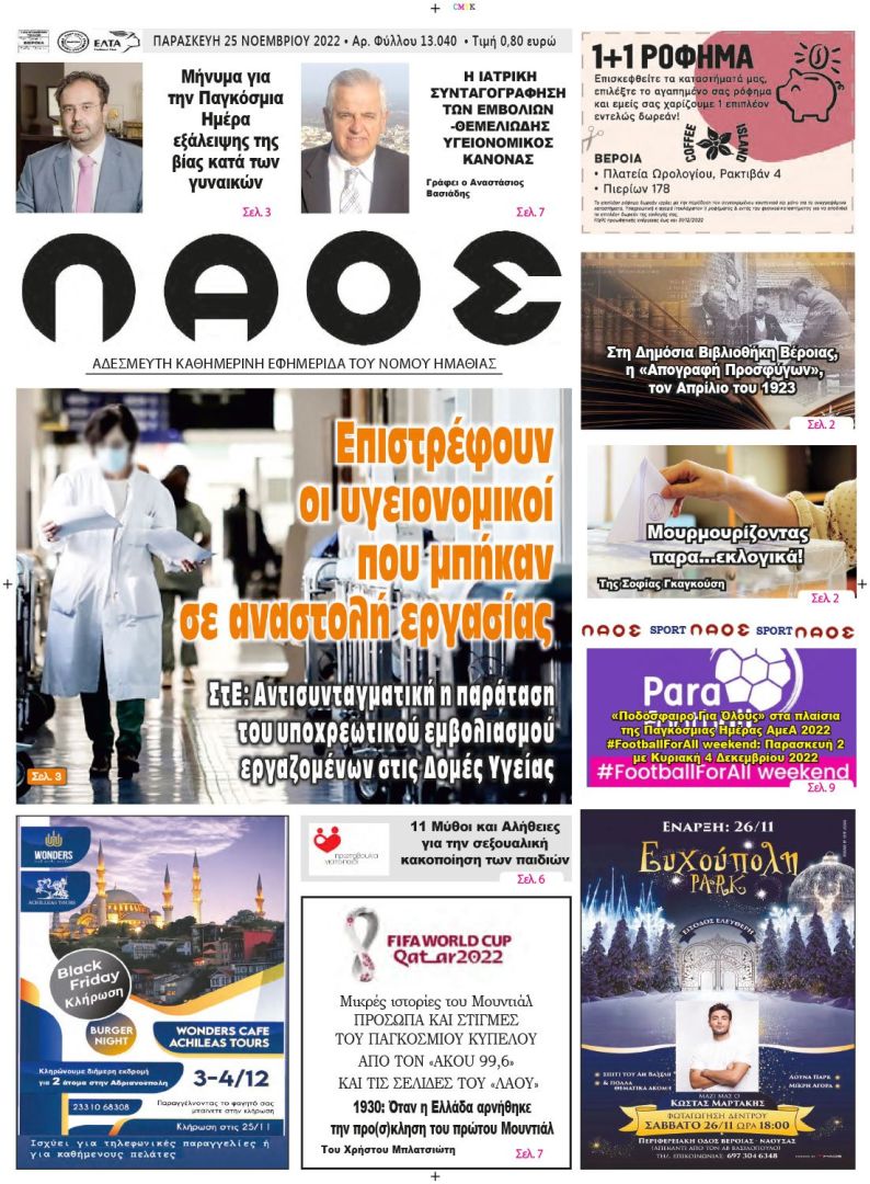 Πρωτοσέλιδο 25/11/2022