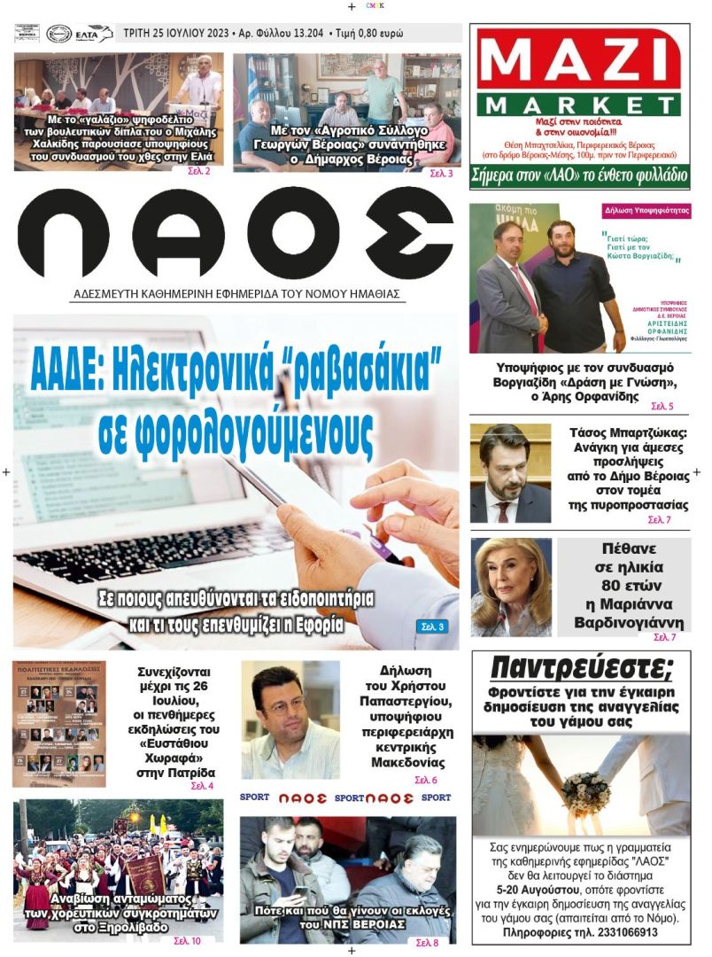Πρωτοσέλιδο 25/7/2023