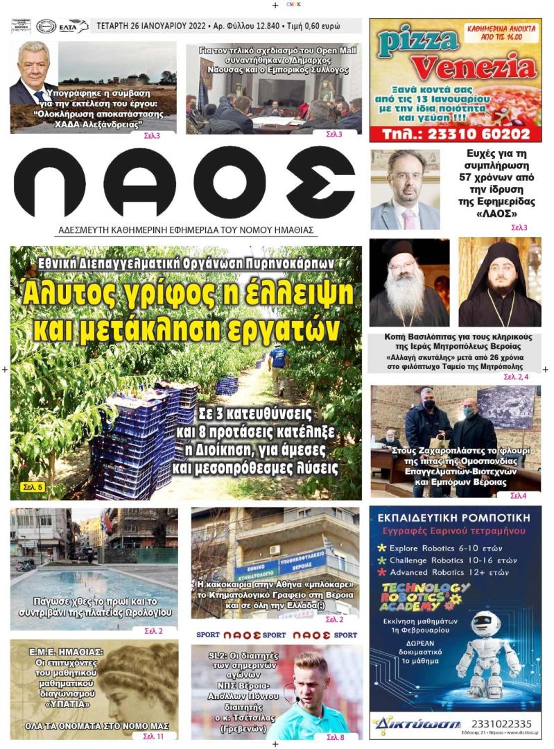 Πρωτοσέλιδο 26/1/2022
