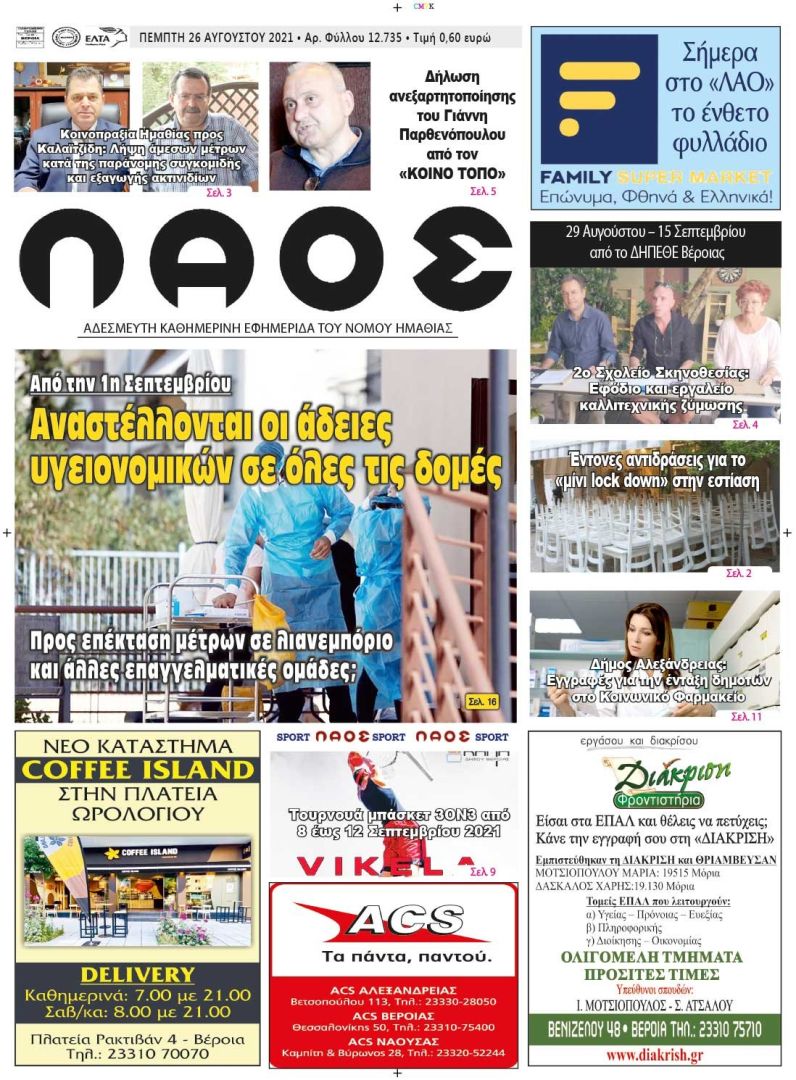 Πρωτοσέλιδο 26/8/2021