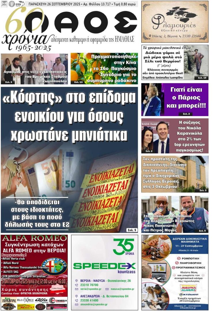 Πρωτοσέλιδο 26/9/2025