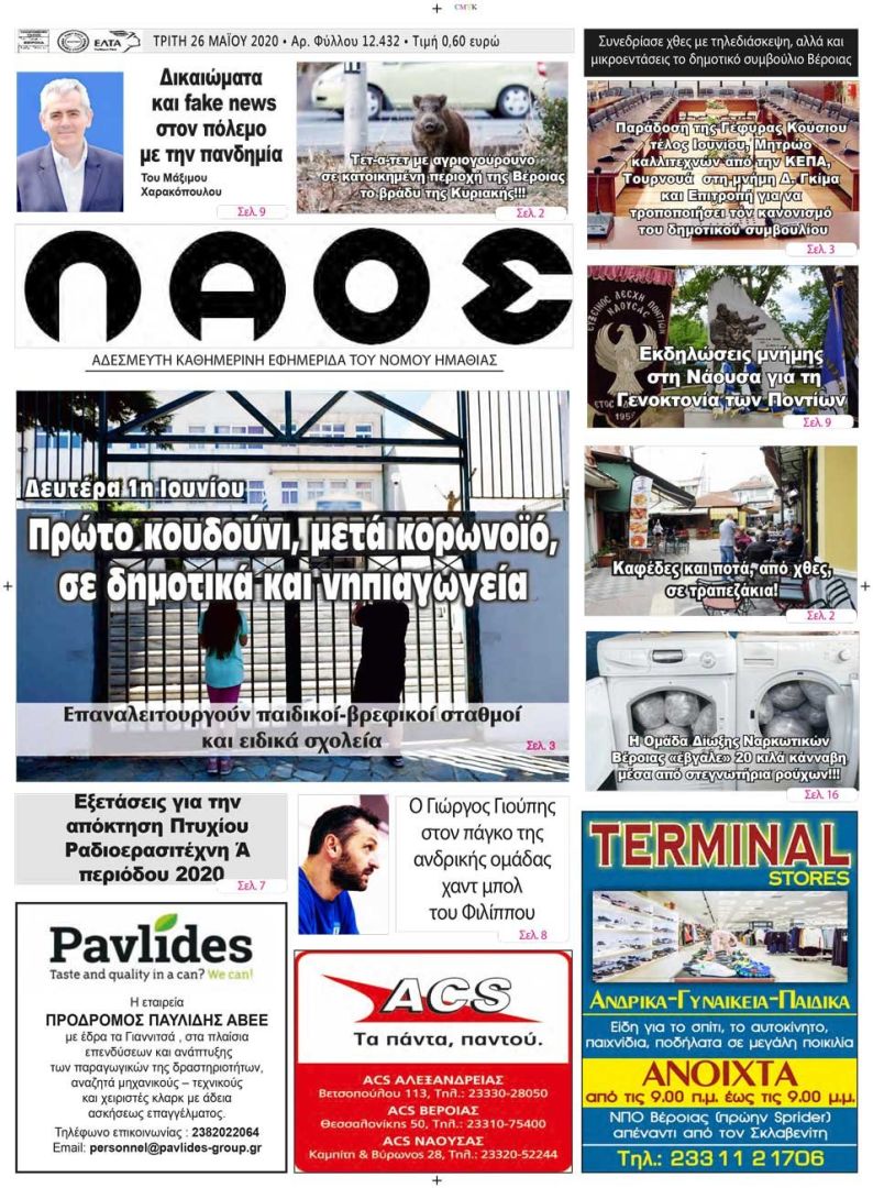 Πρωτοσέλιδο 26 Μαΐου 2020
