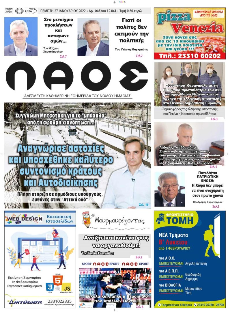 Πρωτοσέλιδο 27/1/2022