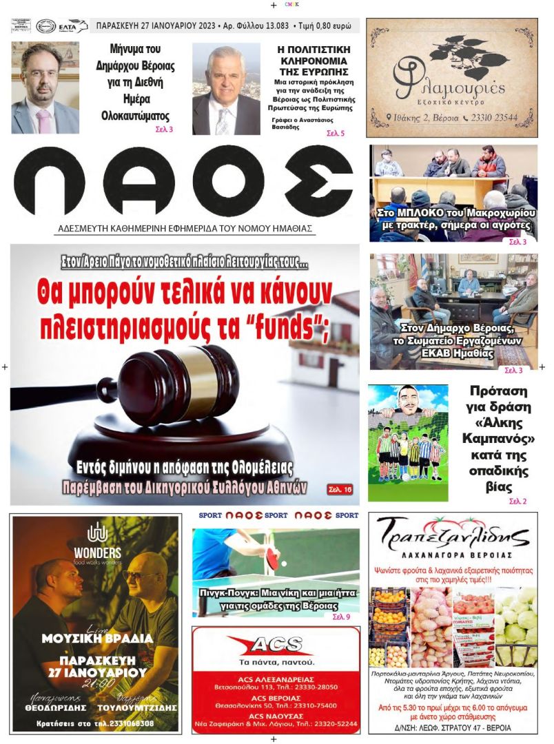 Πρωτοσέλιδο 27/1/2023
