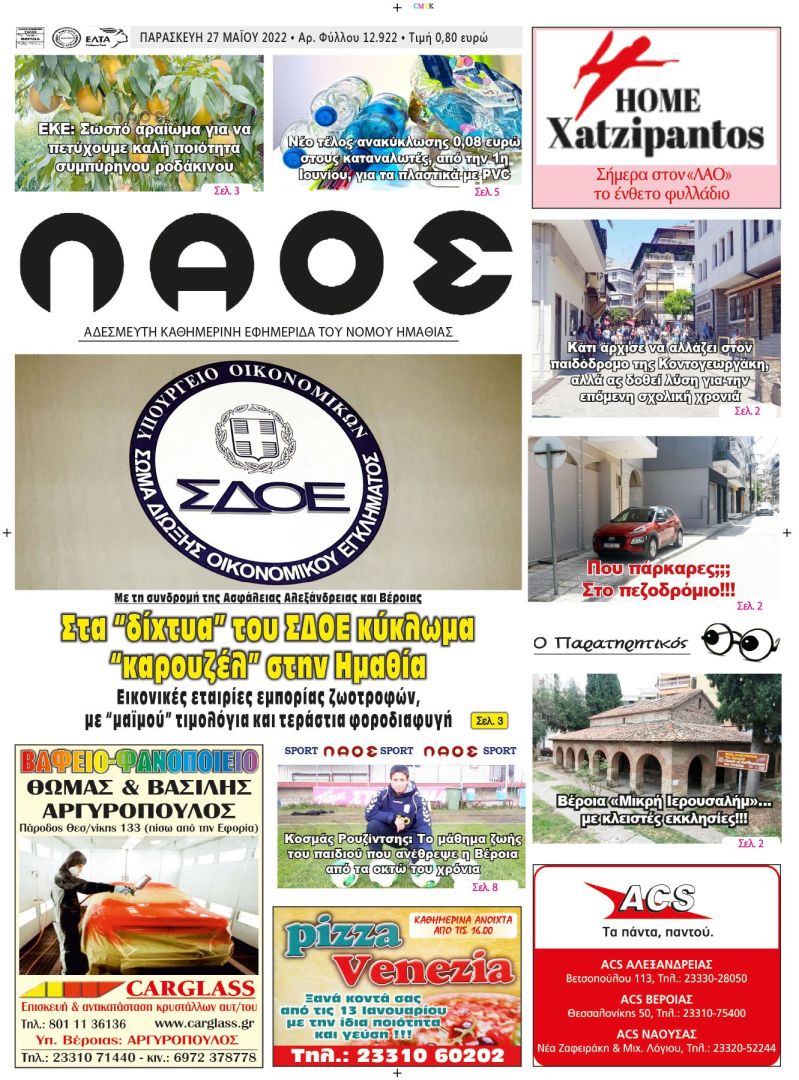 Πρωτοσέλιδο 27/5/2022