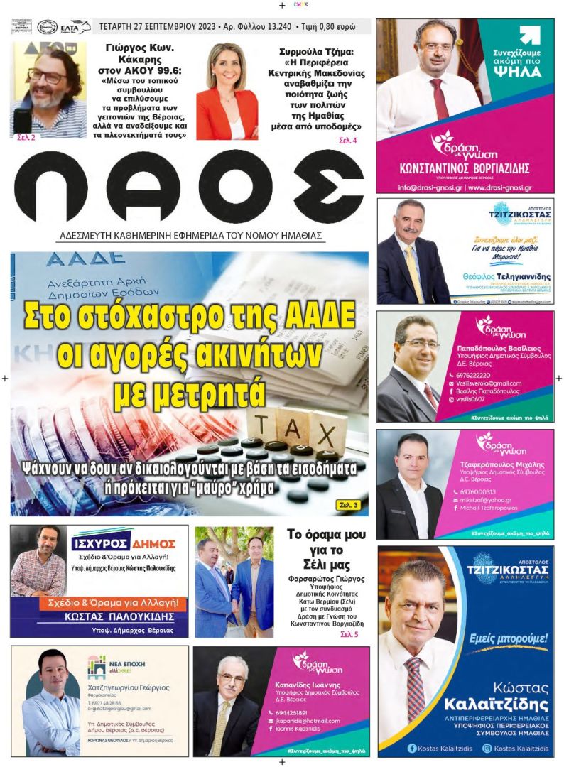 Πρωτοσέλιδο 27/9/2023