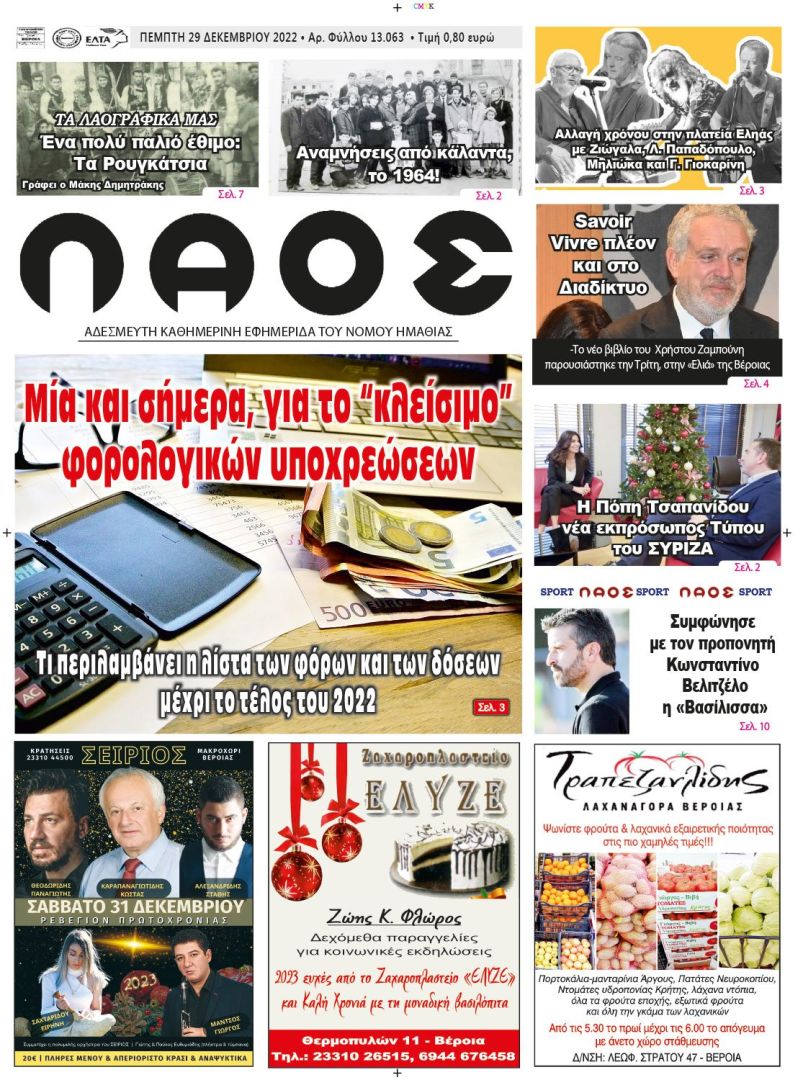 Πρωτοσέλιδο 29/12/2022