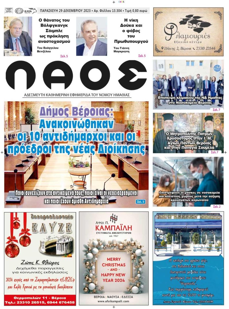Πρωτοσέλιδο 29/12/2023