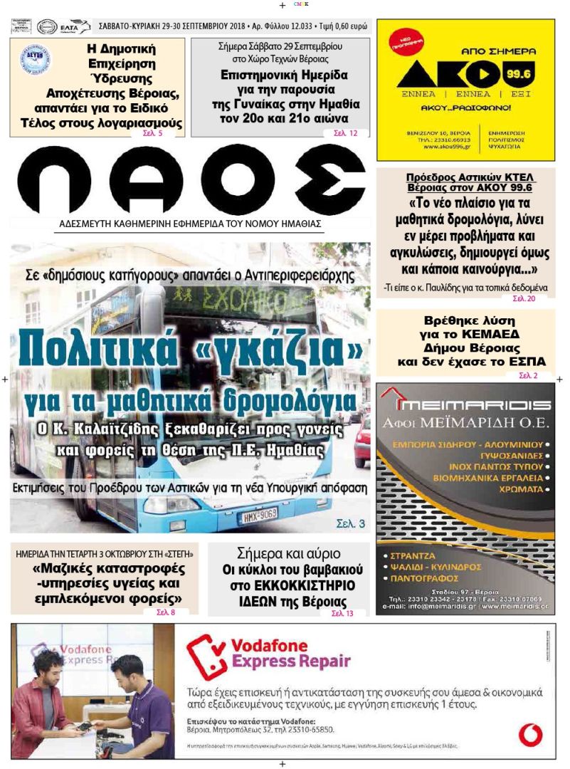 Πρόεδρος Αστικών ΚΤΕΛ Βέροιας στον ΑΚΟΥ 99.6«Το νέο πλαίσιο για τα μαθητικά δρομολόγια, λύνει εν μέρει προβλήματα και αγκυλώσεις, δημιουργεί όμως και κάποια καινούργια…»