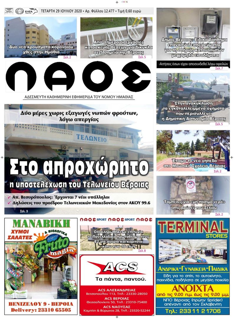 Πρωτοσέλιδο 29/7/2020