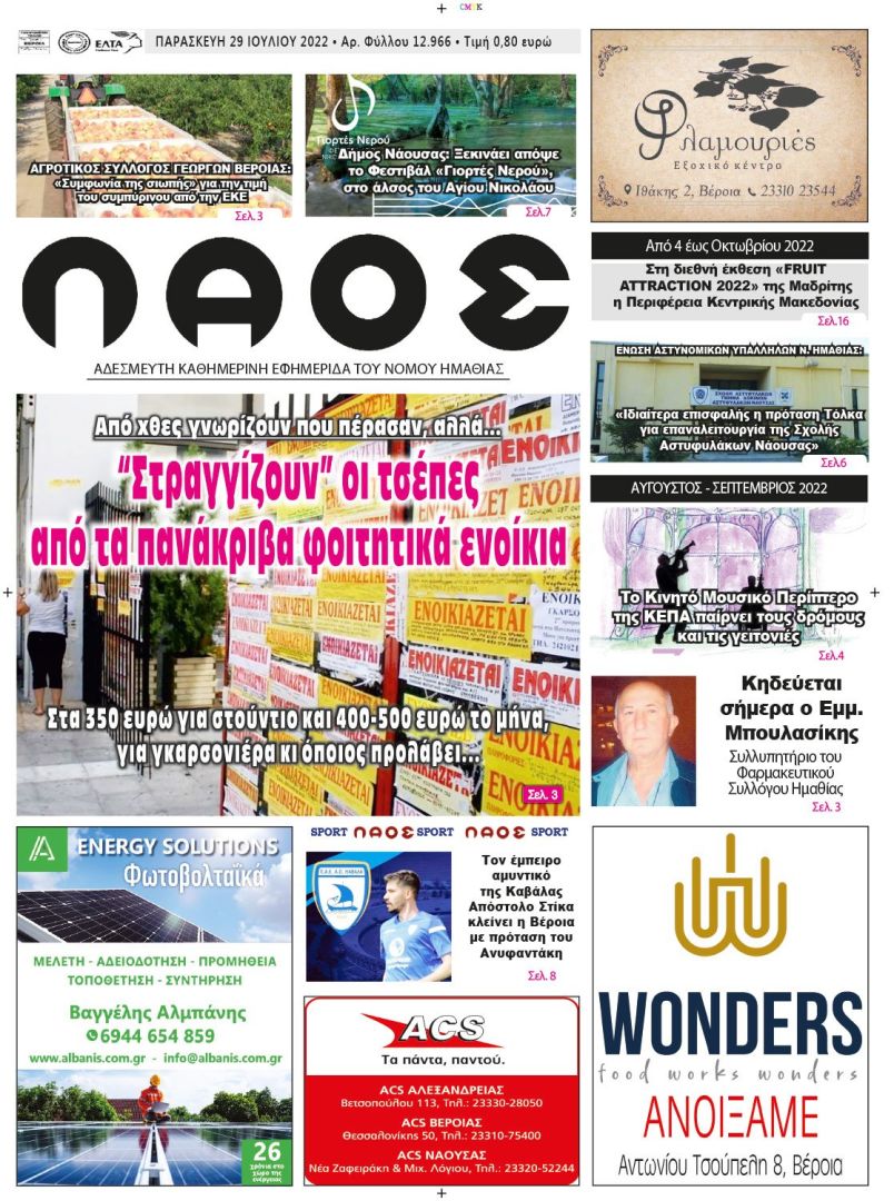 Πρωτοσέλιδο 29/7/2022