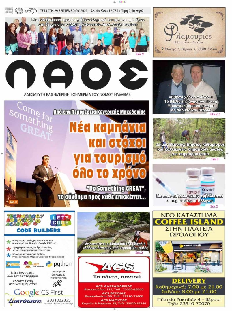 Πρωτοσέλιδο 29/9/2021