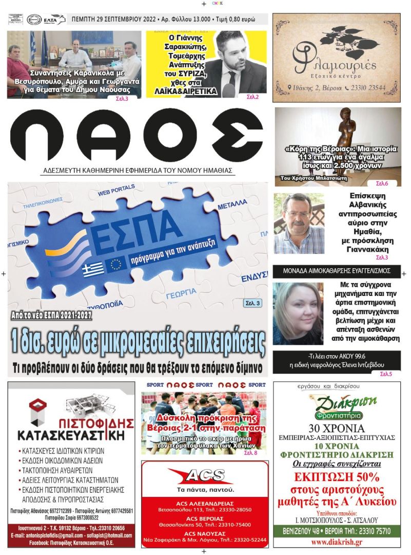 Πρωτοσέλιδο 29/9/2022