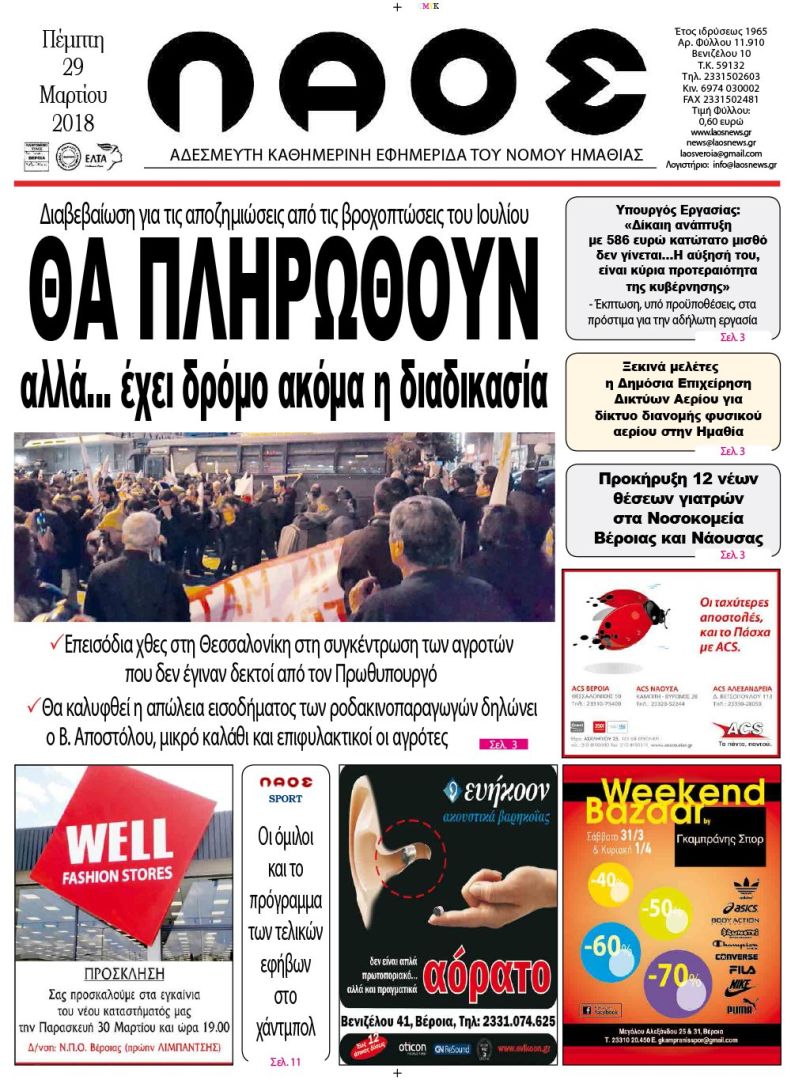 Πρωτοσέλιδο 29 Μαρ. 2018