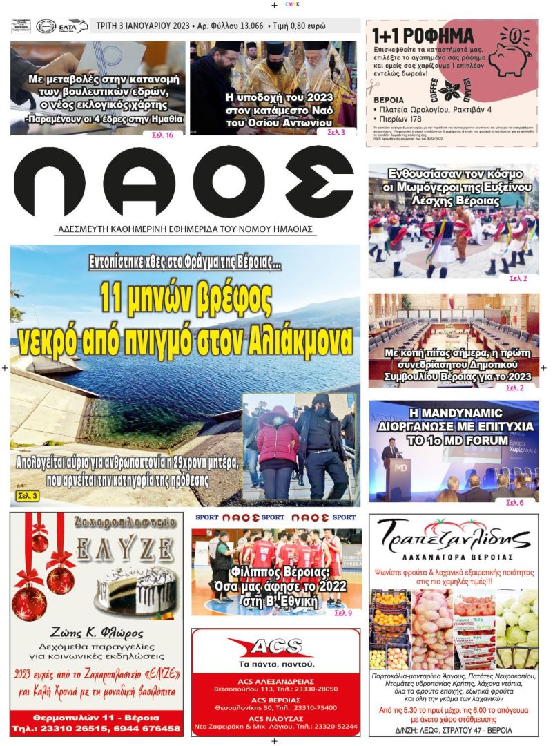 Πρωτοσέλιδο 3/1/2023