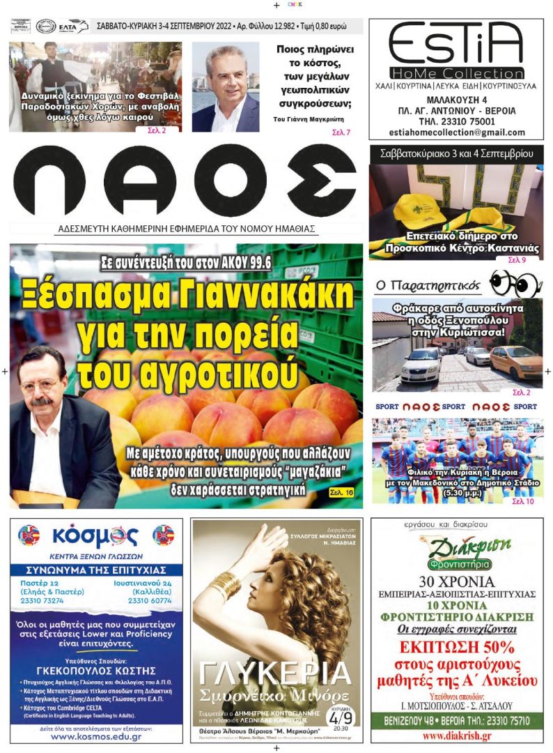 Πρωτοσέλιδο 3-4/9/2022
