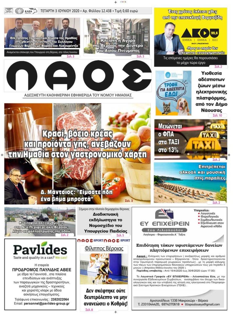 Πρωτοσέλιδο 3 ΙΟΥΝ. 2020