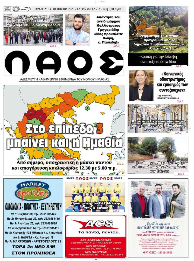 Πρωτοσέλιδο 30/10/2020