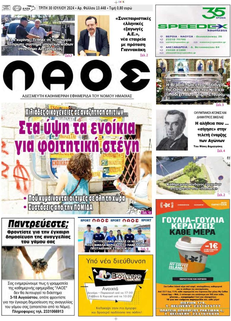 Πρωτοσέλιδο 30/7/2024
