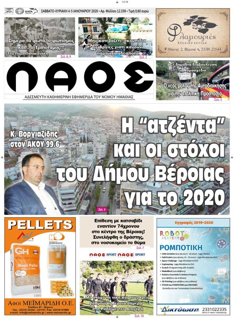 Πρωτοσέλιδο 4-5 ΙΑΝ. 2020