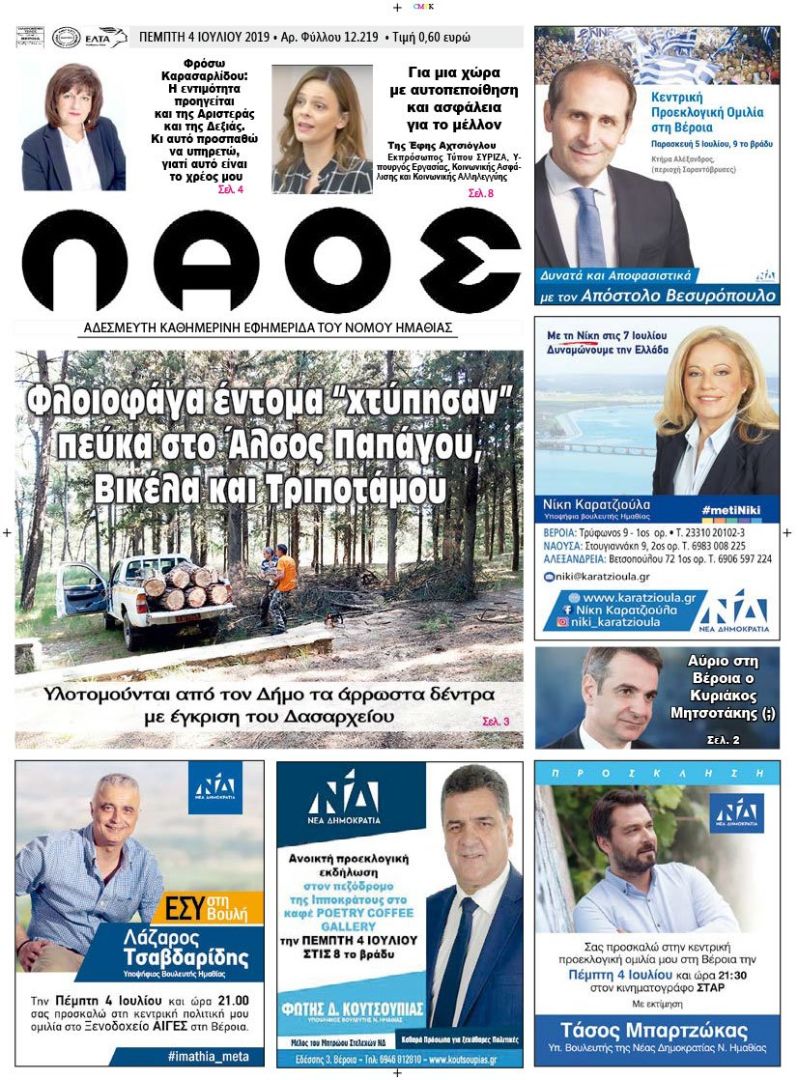 Πρωτοσέλιδο 4 ΙΟΥΛ. 2019