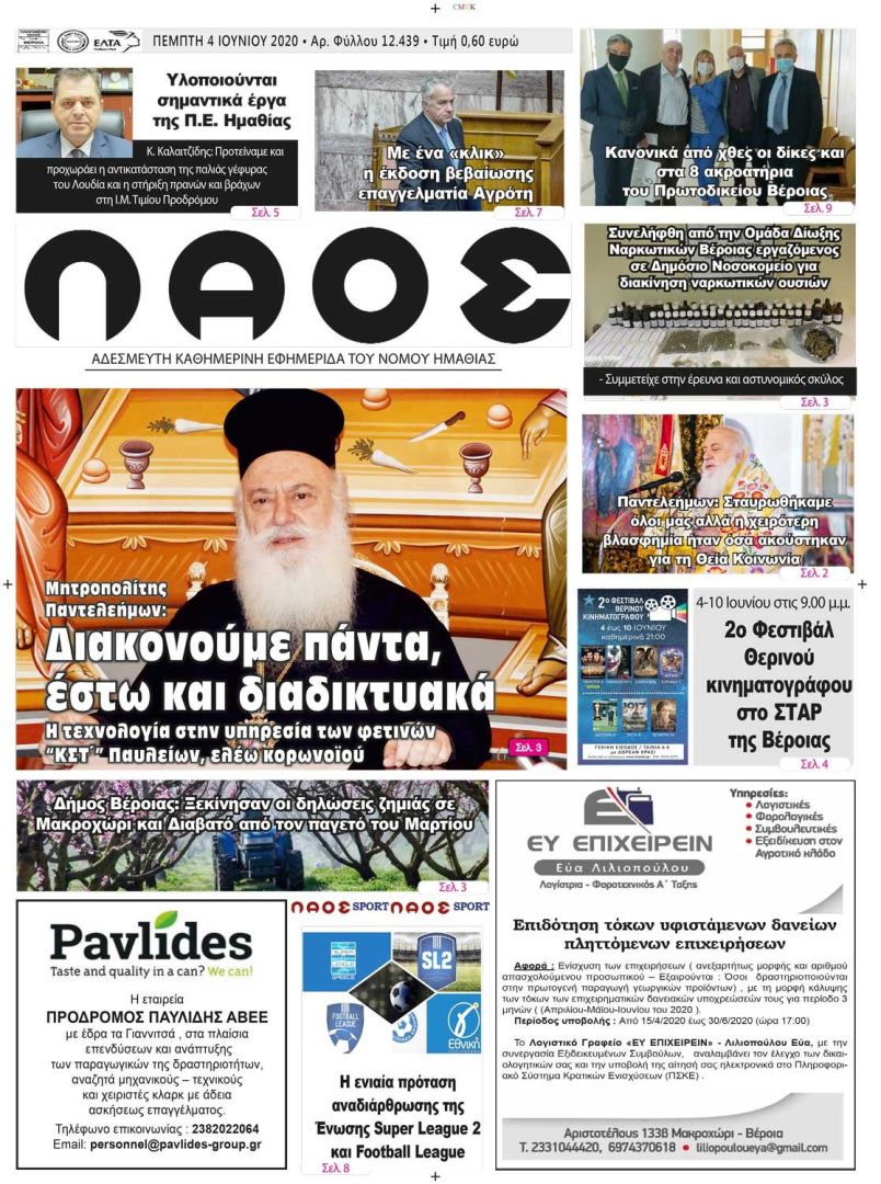 Πρωτοσέλιδο 4 ΙΟΥΝ. 2020