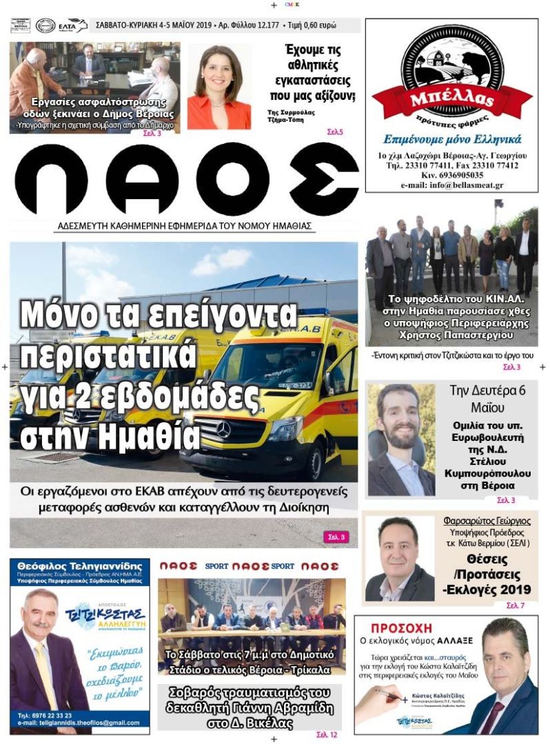 Πρωτοσέλιδο 4 ΜΑΪ 2019