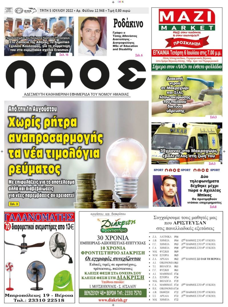 Πρωτοσέλιδο 5/7/2022