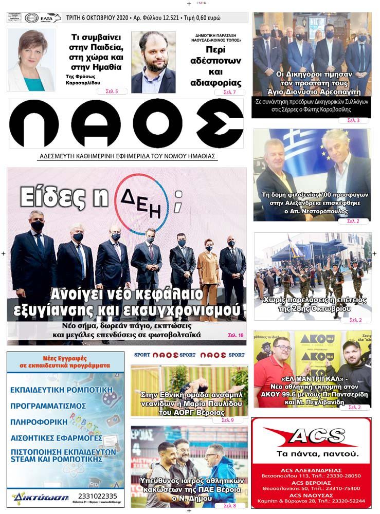Πρωτοσέλιδο 6/10/2020