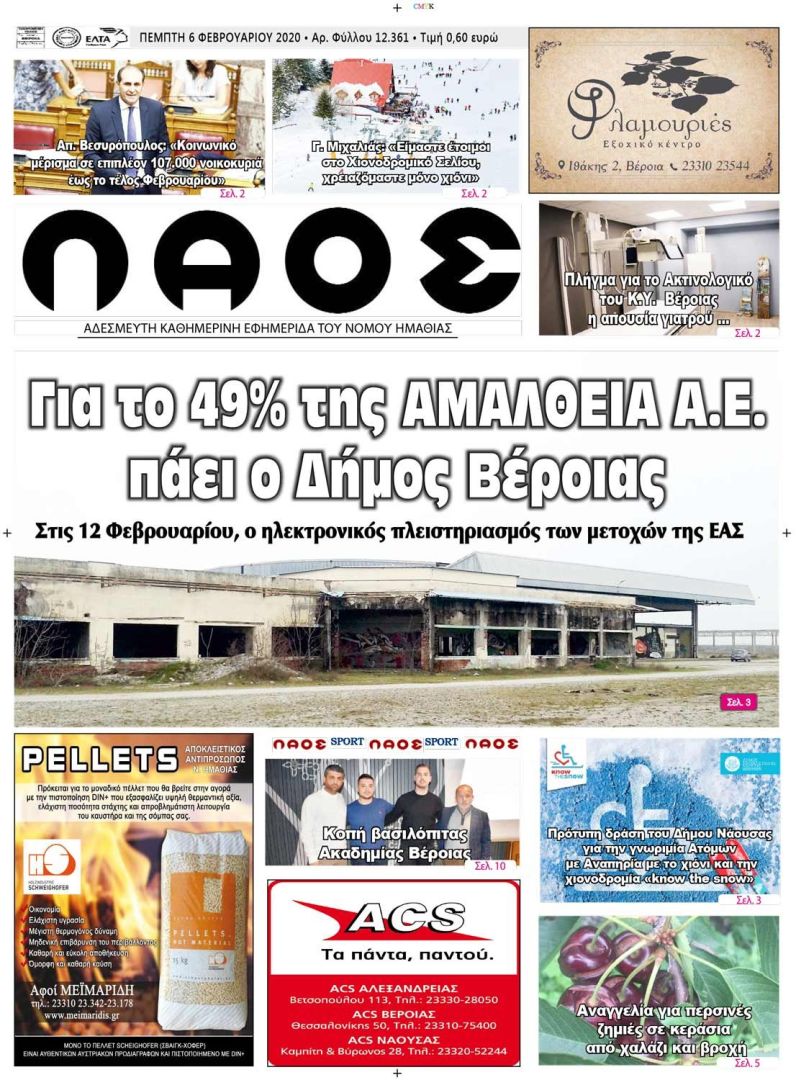 Πρωτοσέλιδο 6 ΦΕΒ. 2020