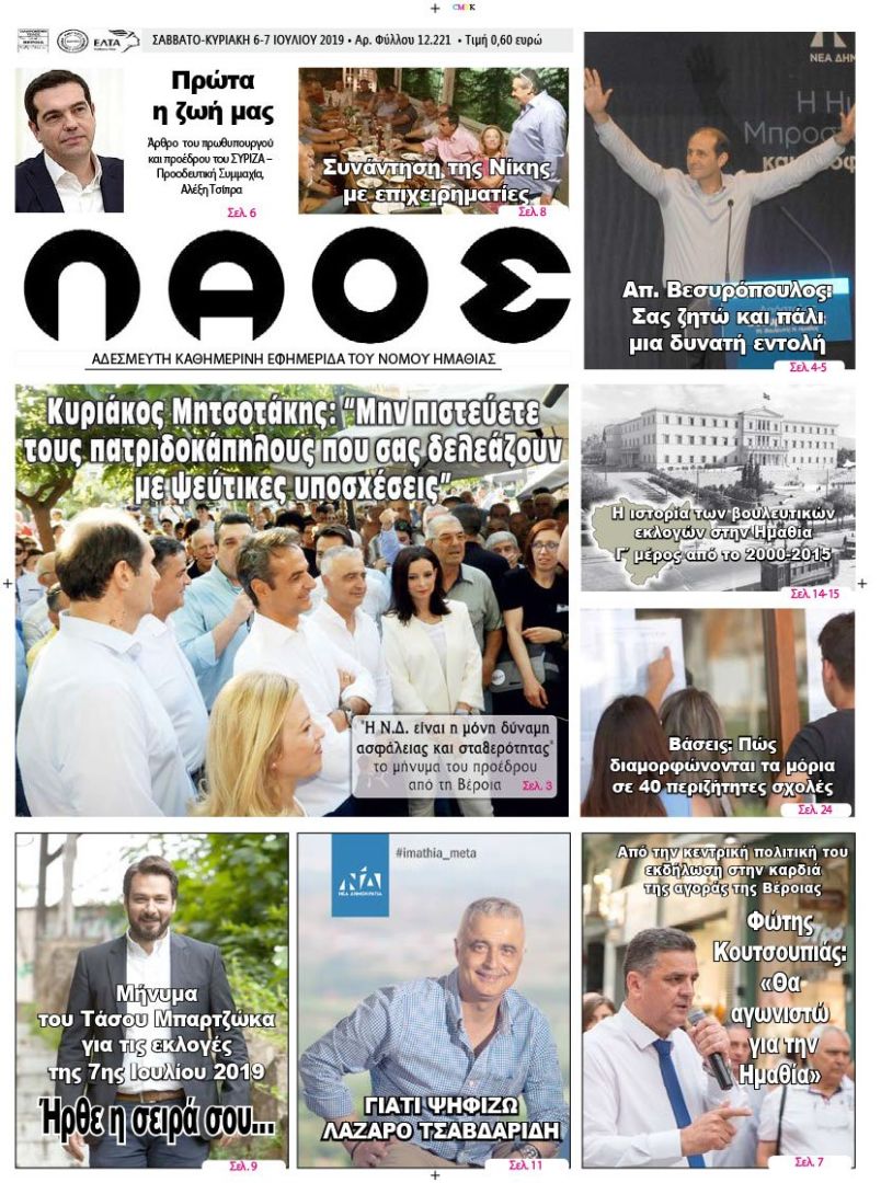 Πρωτοσέλιδο 6 ΙΟΥΛ. 2019
