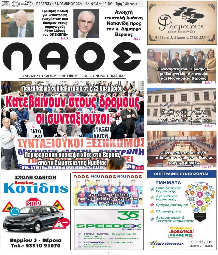 Πρωτοσέλιδο 8/11/2024