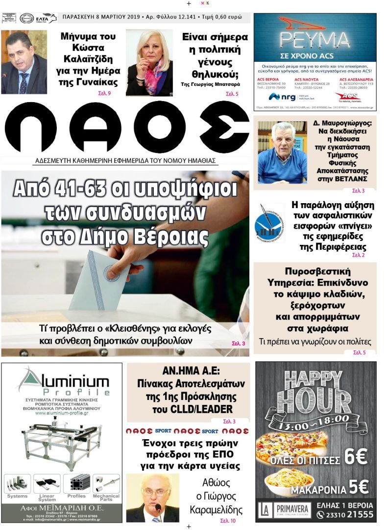 Πρωτοσέλιδο 8 ΜΑΡ. 2019