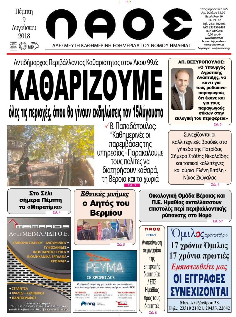Οικολογική Ομάδα Βέροιας και Π.Ε. Ημαθίας ανταλλάσσουν επιστολές περί περιβαλλοντικής ρύπανσης στο Νομό