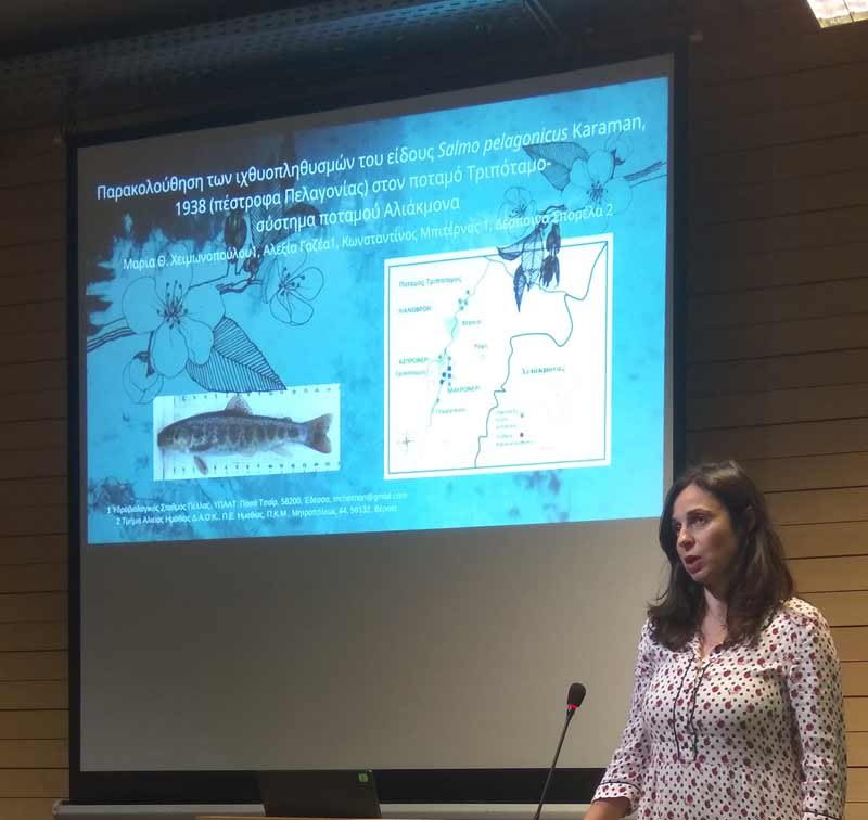 Η κ. Χειμωνοπούλου Μαρία Βιολόγος-Ιχθυολόγος MSc(Res) του Υδροβιολογικού Σταθμού Πέλλας, ΥΠ.Α.Α.Τ, ο οποίος πραγματοποιεί