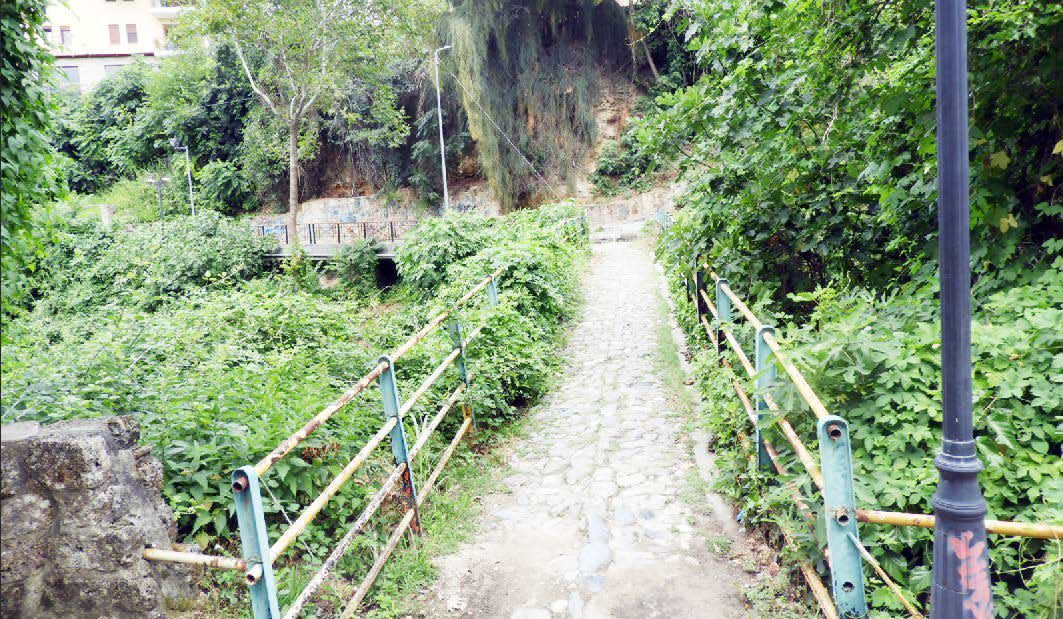 Η παλιά Βέροια από την πλευρά του ποταμού Τριπόταμου, που από την οργιώδη βλάστηση, λόγω της εποχής, δυσκολεύεσαι να δεις τη ροή της.