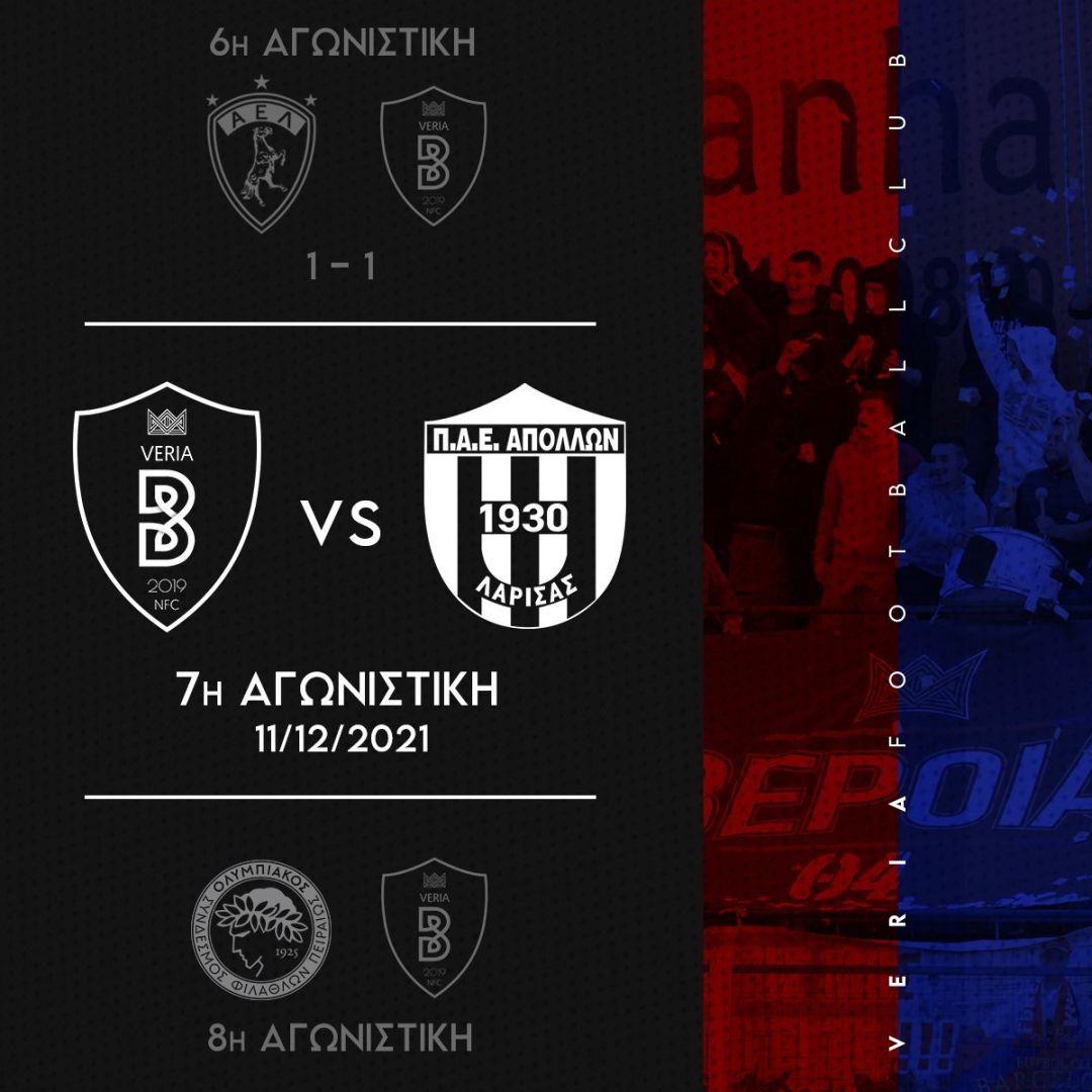Με μοναδικό στόχο την νίκη ο ΝΠΣ Βέροια υποδέχεται το Σαββατιάτικο (11/12, 14:45 ΕΡΤ3) τον Απόλλωνα Λάρισας.