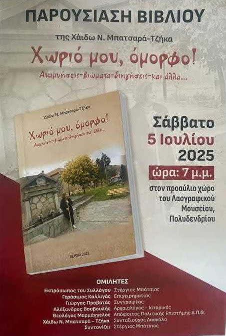 Ένα βιβλίο που αξίζει να το προσέξει κανείς, είναι το «Χωριό μου όμορφο» της Χάιδως Μπατσαρά Τζήκα, με αναμνήσεις, βιώματα και άλλα ενδιαφέροντα από το ορεινό χωριό των Πιερίων, το Πολυδένδρι, που παλιά το έλεγαν και Κόκοβα, φημισμένο για το κλίμα τ και για θεραπευτικές του ιδιότητες, ένα χωριό που το πρότειναν οι γιατροί για παραθέριση. Στις 154 σελίδες του βιβλίου της η κα Μπατσαρά, γυρίζει τον αναγνώστη πολλά χρόνια πίσω, στις δύσκολες δεκαετίες του ΄50 και ΄60, στην κοινωνία του χωριού, στην καθημερινότητα, τα ήθη, τα έθιμα και την ντοπιολαλιά, στις συνθήκες διαβίωσης που σήμερα φαίνονται απίστευτες, ήταν όμως αληθινές και βιωμένες από γυναίκες, άντρες, από αγόρια, κορίτσια και τους μεγαλύτερους του χωριού με την σοφία ζωής που κουβαλούσαν, με το τραγούδι και το γλέντι, με τους ρόλους τους ο καθένας στη μικρή τους κοινότητα.