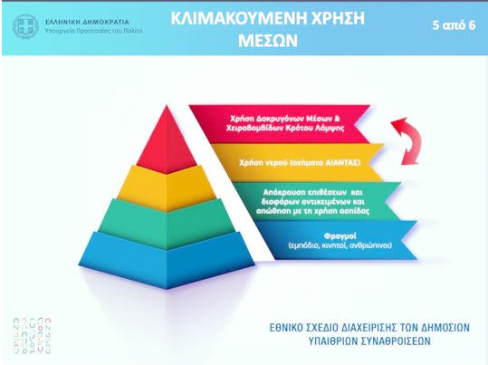 Τέσσερα βήματα θα ακολουθεί η Αστυνομία στις συναθροίσεις: προετοιμασία, επικοινωνία, δράση και λογοδοσία. Η διαχείριση των συναθροίσεων στηρίζεται στη λογική της αναλογικότητας, με την έννοια ότι θα γίνεται αξιολόγηση του κινδύνου και θα υπάρχει κλιμακωτή αντίδραση με προτελευταία τη χρήση νερού από τα ειδικά οχήματα και τελευταία τη χρήση χημικών. «θα εξαντλούνται τα όρια επιείκειας και τα περιθώρια συνεννόησης, γιατί το δικαίωμα της έκφρασης είναι αδιαπραγμaάτευτο. Αυτό ισχύει χωρίς αστερίσκους και υποσημειώσεις. Εξίσου αδιαπραγμάτευτο είναι και το δικαίωμα της πόλης να λειτουργεί. Η διαμαρτυρία και η κανονικότητα δεν είναι αντινομικές. Διαδηλωτές και μη διαδηλωτές δεν είναι εχθροί. Εμείς θα κάνουμε το παν για να εξασφαλίσουμε τον σεβασμό στη διαφορετικότητα, το δικαίωμα της επιλογής του πολίτη», επισήμανε ο υπουργός Προστασίας του Πολίτη, δίνοντας στη δημοσιότητα και σχετικά γραφήματα που παρουσιάζουν σχηματικά το σχέδιο για τη διαχείριση των συναθροίσεων…