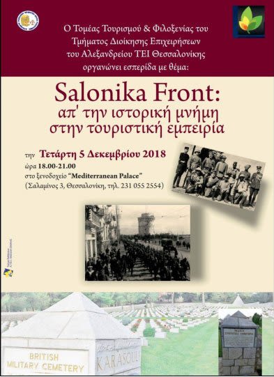 Με τη συμμετοχή και του Δήμου Βέροιας διεξήχθη εσπερίδα του Τομέα Τουρισμού και Φιλοξενίας του Αλεξανδρείου ΤΕΙ Θεσσαλονίκης με τίτλο «Salonika Front: Απ’ την Ιστορική Μνήμη στην Τουριστική Εμπειρία», την Τετάρτη 05 Δεκεμβρίου 2018, στο ξενοδοχείο Mediterranean Palace στη Θεσσαλονίκη.