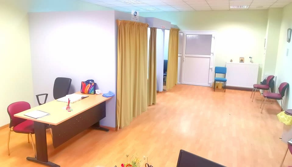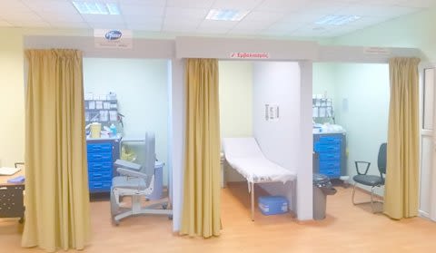 Ο χώρος διαμορφώθηκε, ανανεώθηκε και εξοπλίστηκε. Είναι εύκολος σε πρόσβαση με αυτοκίνητο καθώς βρίσκεται δίπλα στην κεντρική (γυάλινη) είσοδο και διαθέτει εξωτερικό χώρο αναμονής και παραμονής των πολιτών που έχουν ραντεβού για εμβολιασμό, εξυπηρετώντας καθημερινά περίπου 250 εμβολιασμένους.