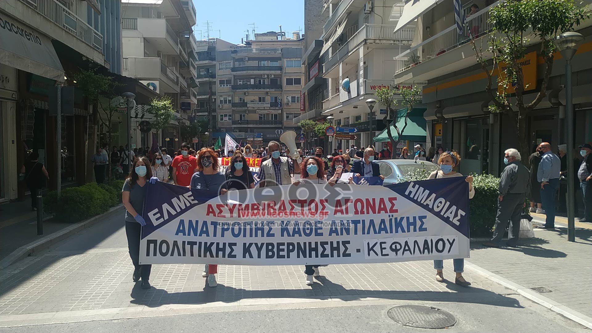 Ακολούθησε επίσης πορεία με πανό και συνθήματα στο κέντρο της Βέροιας.