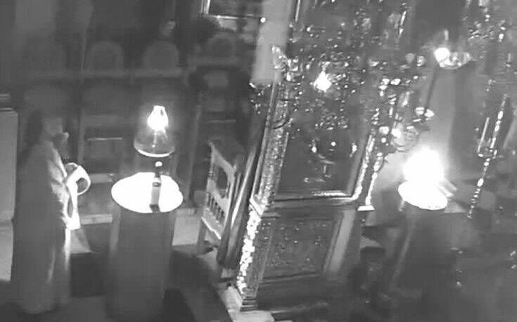 Στο βίντεο διακρίνονται σοβάδες να πέφτουν με τον έναν ιερέα να συνεχίζει να ψέλνει και τον δεύτερο να τρώει αντίδωρο, αφού μόλις έχει μεταλάβει.