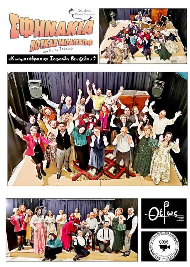 Η θεατρική ομάδα ΘΕΡΩΣ της ΚΙΝΗΜΑΤΟΔΡΑΣΙΣ παρουσιάζει την παράσταση «Σφηνάκια Βότκας Μολότωφ» του Άντον Τσέχωφ σε σκηνοθεσία Χρύσας Αντωνίου.