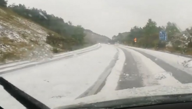 Έντονο πρόβλημα αντιμετώπισαν οι οδηγοί που κινούνταν στην εθνική οδό Πολυγύρου Θεσσαλονίκης μετά την έντονη χαλαζόπτωση που σημειώθηκε.