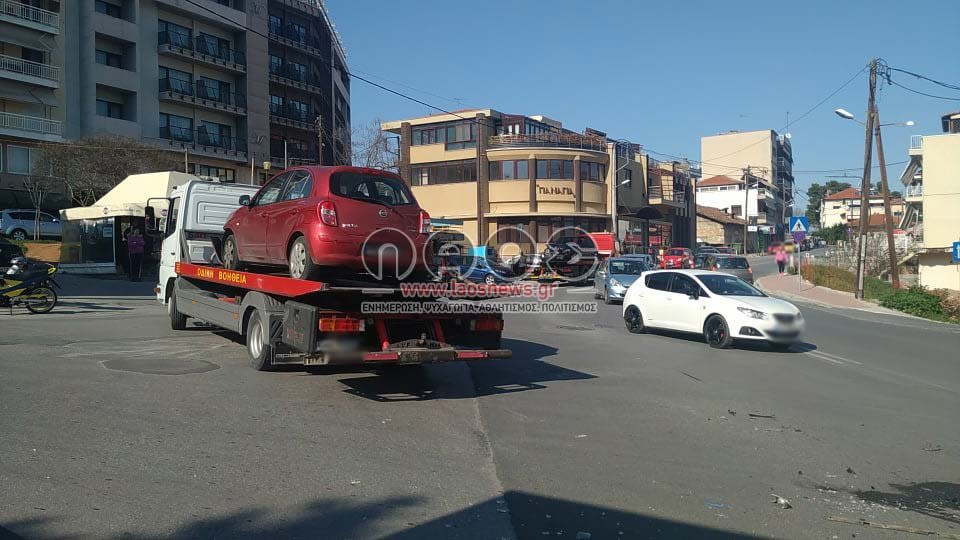 Μόλις πέρασε το άνοιγμα μπροστά από το ξενοδοχείο Μακεδονία και έμπαινε στην οδό Πιερίων συγκρούστηκε με ένα βυσσινί επίσης μικρό Ι.Χ. μάρκας Nissan, το οποίο οδηγούσε άνδρας περίπου 65-70 ετών, το οποίο ερχόταν από την οδό Πιερίων και προσπάθησε να στρίψει προς την οδό Θωμαίδου.