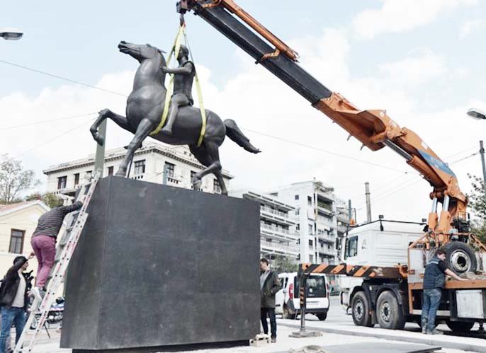 Το άγαλμα του Μεγάλου Αλεξάνδρου θα συναντούν από σήμερα όσοι οδηγοί περνούν στο κέντρο της Αθήνας από τη συμβολή των οδών Βασιλίσσης Όλγας και Αμαλίας καθώς ολοκληρώθηκαν οι εργασίες τοποθέτησής του.