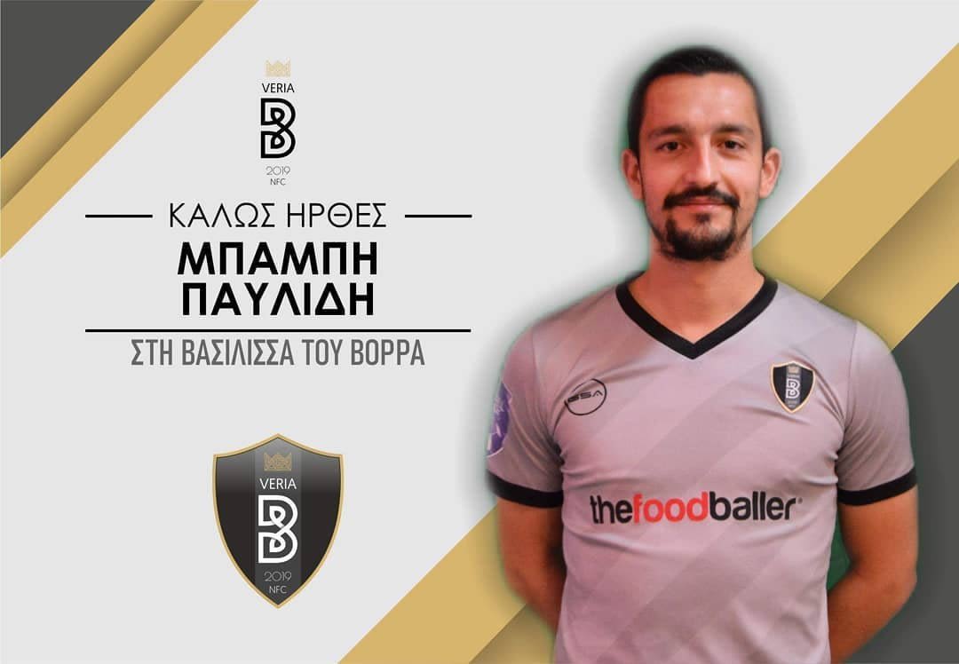 ” Η ΠΑΕ ΝΠΣ Βέροια ανακοινώνει την απόκτηση του Χαράλαμπου Παυλίδη. Ο Χαράλαμπος Παυλίδης γεννήθηκε στις 6/5/1991, παίζει στην μεσαία γραμμή, ανδρώθηκε ποδοσφαιρικά στην Βέροια και έπαιξε με την φανέλα της στην Γ’, στην Β” εθνική αλλά και στην Superleague. Φόρεσε ακόμη την φανέλα της Νίκης Βόλου και του Άρη Θεσσαλονίκης (έπαιξε και στην Superleague με την φανέλα του Άρη). Φέτος ξεκίνησε την σεζόν στον Απόλλωνα Σμύρνης, στην Superleague 2, και μετακινήθηκε με υποσχετική στην Βέροια.
