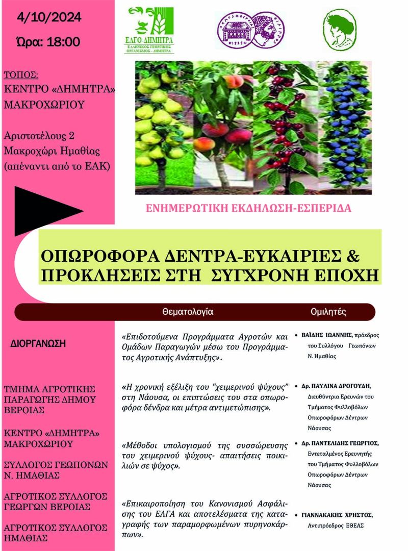 εκδήλωση – εσπερίδα με θέμα: ΟΠΩΡΟΦΟΡΑ ΔΕΝΤΡΑ – ΕΥΚΑΙΡΙΕΣ